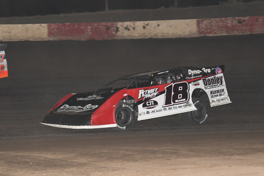 Shannon Babb in a MARS Racing Series battle at Peoria (IL) Speedway in August 2020 - Todd Healy Photo