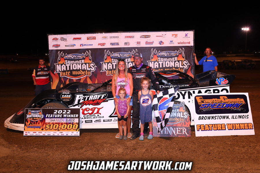 Shannon Babb wins $10,000 on the DIRTcar Summer Nationals tour at Fayette County (IL) Speedway - Josh James Artwork